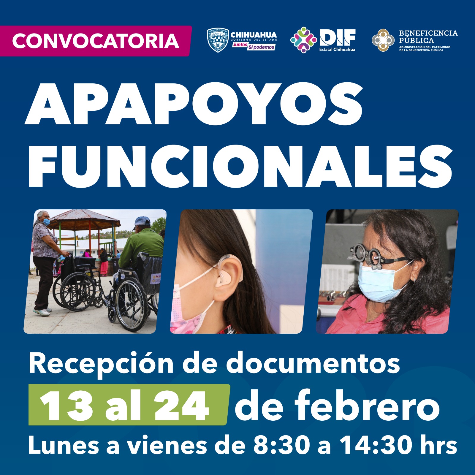 El DIF Estatal convoca a la población que requiere de aparatos de movilidad, auxiliares auditivos y visuales a llevar la papelería necesaria del 13 al 17 de febrero y del 20 al 24 febrero.