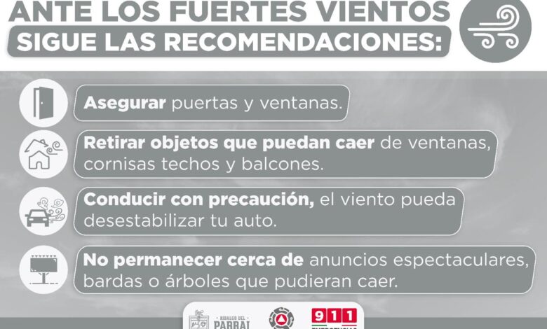 La Unidad de Protección Civil informa el pronóstico de fuertes vientos. Se espera que, las ráfagas de viento alcancen velocidades de hasta 100 kilómetros por hora.