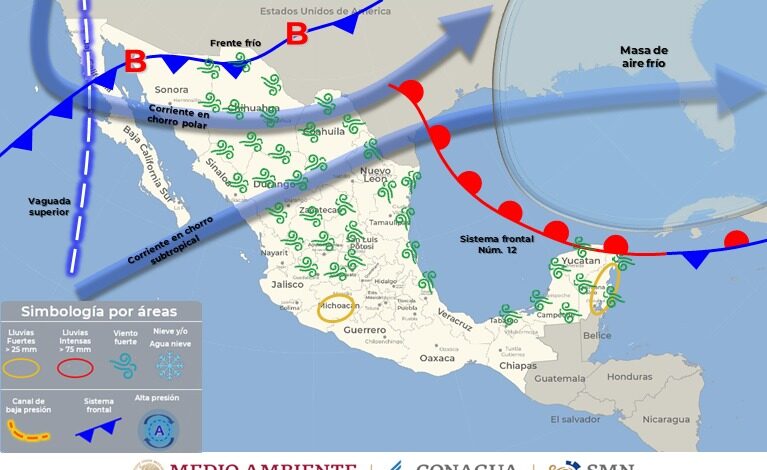 De acuerdo con el Servicio Meteorológico Nacional, lo anterior es generado por la masa de aire polar que impulsó al frente frio número 12 y su interacción con el ingreso de humedad del Océano Pacifico.