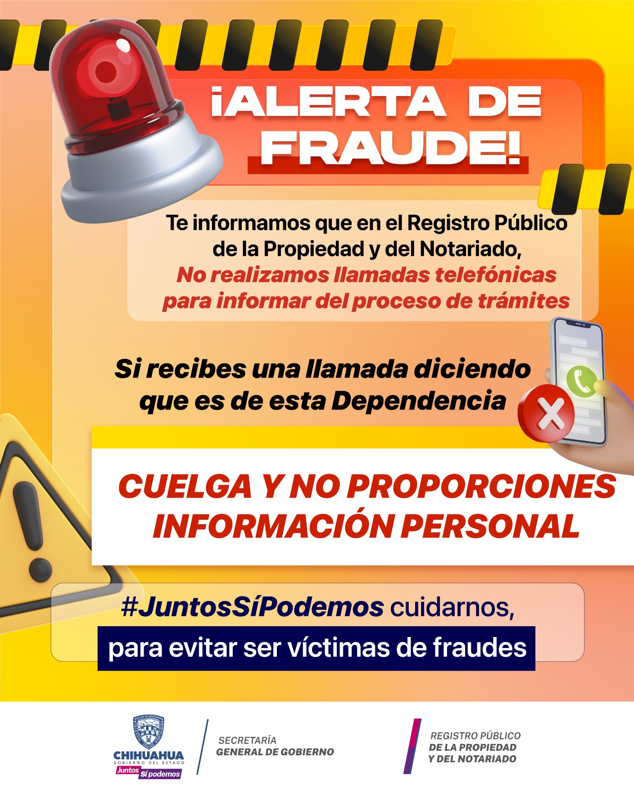 El registrador Nicolás Villegas, aclaró que ningún funcionario del RPP está autorizado para realizar ese tipo de llamadas, por lo que alertó a la ciudadanía para que tome precauciones y evite ser víctima de algún fraude o extorsión.