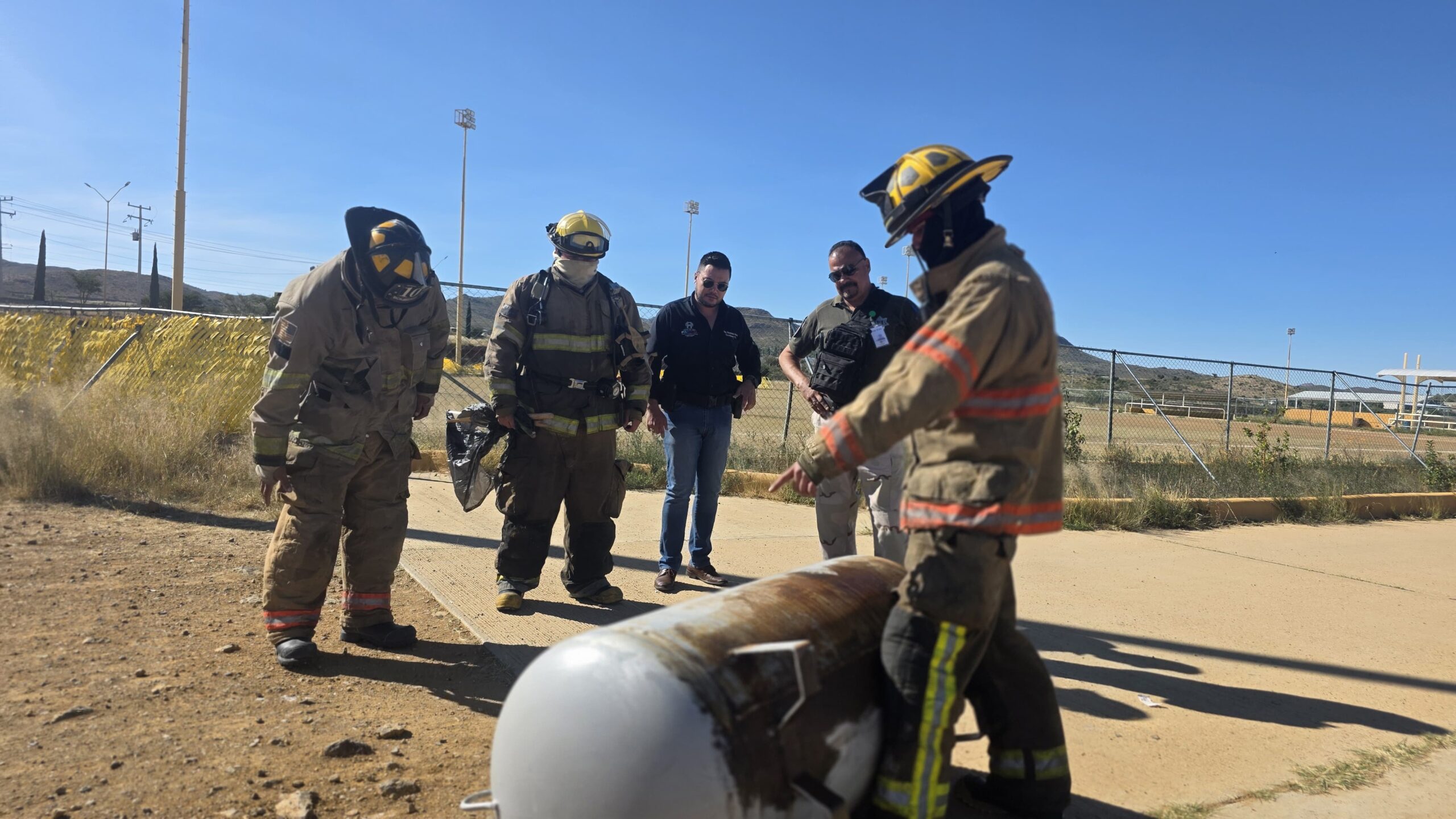 Al llegar al lugar, los elementos especializados detectaron que la fuga se originaba en la válvula de llenado, por lo que realizaron maniobras de taponamiento y control. Posteriormente, el cilindro fue trasladado a un área despoblada, donde se efectuó una liberación controlada del material, conforme a los protocolos de seguridad establecidos.
