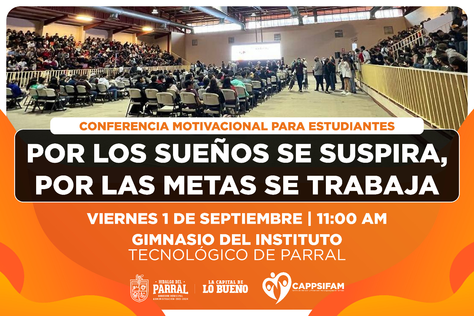 Con el objetivo de motivar al alumnado de nuevo ingreso del Tecnológico de Parral, para que fortalezcan sus metas e incrementen la oportunidad de culminar con éxito su carrera; este viernes 1º de septiembre personal Centro de Atención y Prevención Psicológica para las Familias (CAPPSIFAM) impartirá la conferencia “ Por los sueños se suspira, por las metas se trabaja”.