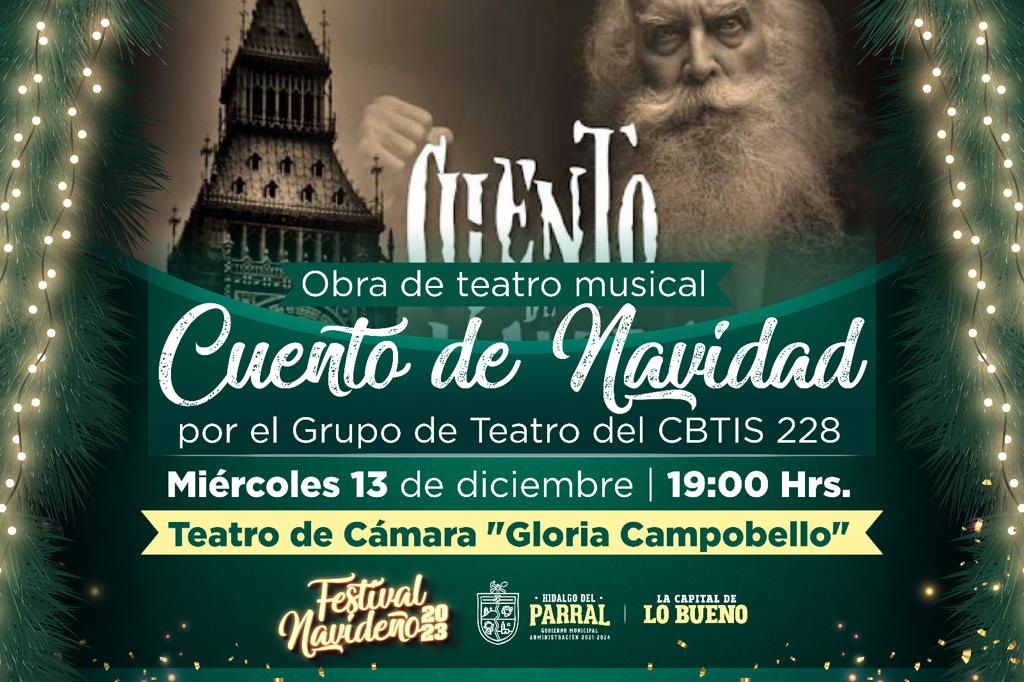 En el marco del Festival de Navidad 2023 organizado por el Gobierno de Parral, el Grupo de Teatro del CBTIS 228 presentará la obra musical «Cuento de Navidad».