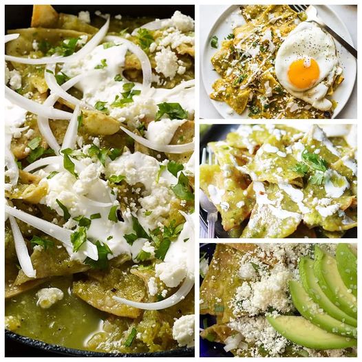 6-Acompaña los chilaquiles con totopos de maíz y el pollo con la salsa. A continuación, agrega un poco más de pollo y acompaña con rebanadas de cebolla, crema y queso fresco.
