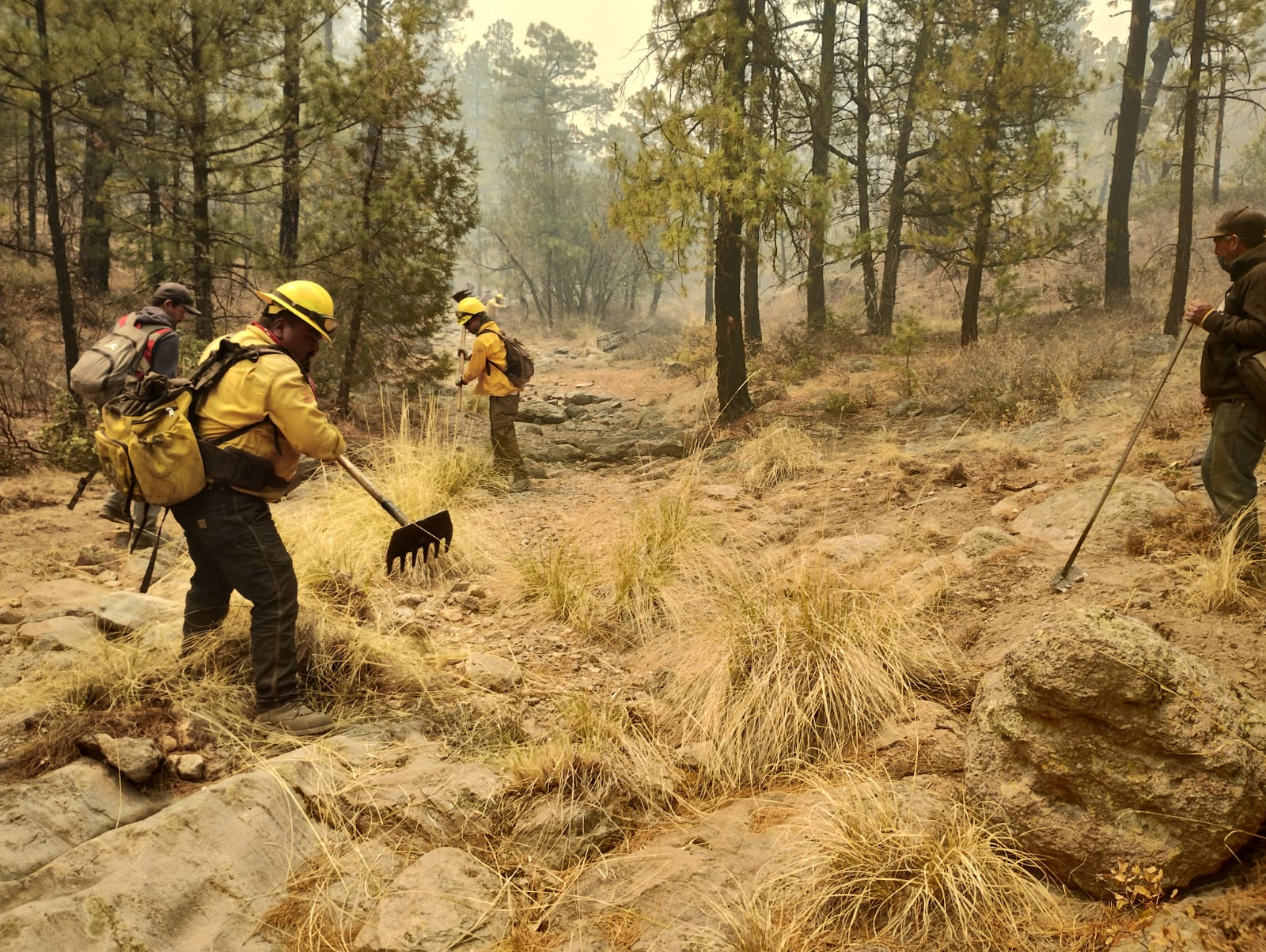 En las labores de combate trabajan en conjunto equipos de la Conafor y de la Secretaría de Desarrollo Rural, a través de las brigadas propias, rurales y del programa Pago por Servicios Ambientales, con apoyo operativo de la Coordinación Estatal de Protección Civil.