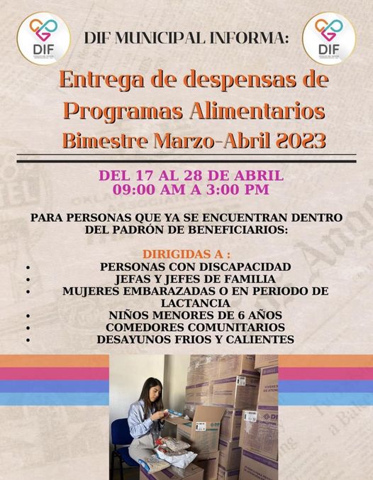DIF municipal inicia entrega de despensas del bimestre Marzo-Abril 2023.