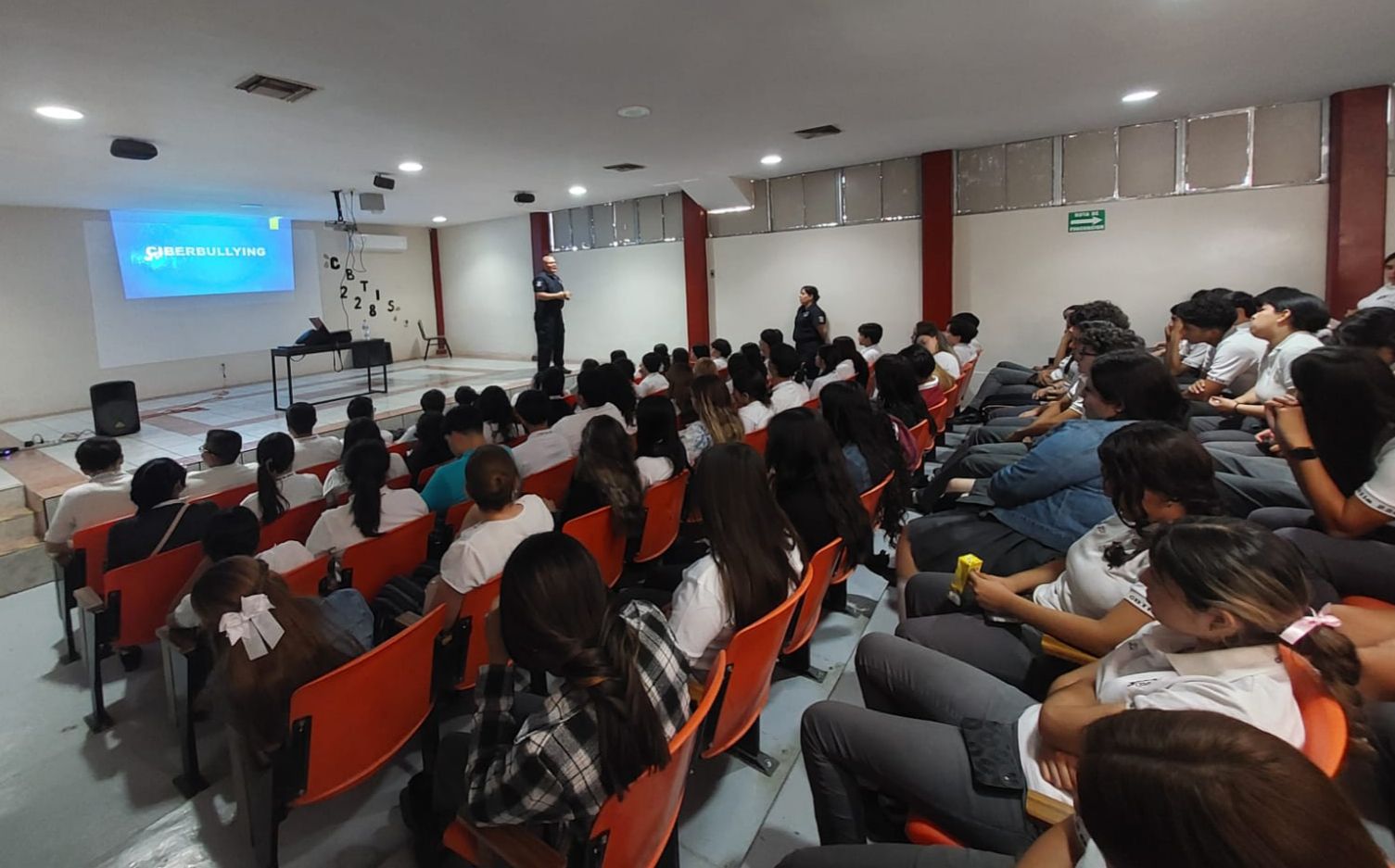 Posteriormente, en el CBTis 228, los agentes impartieron una charla sobre delitos cibernéticos, enfocándose en las consecuencias legales y emocionales que puede implicar el mal uso de redes sociales y plataformas digitales. Este encuentro permitió a los jóvenes reflexionar sobre el uso responsable de la tecnología y la importancia de proteger su privacidad en línea.