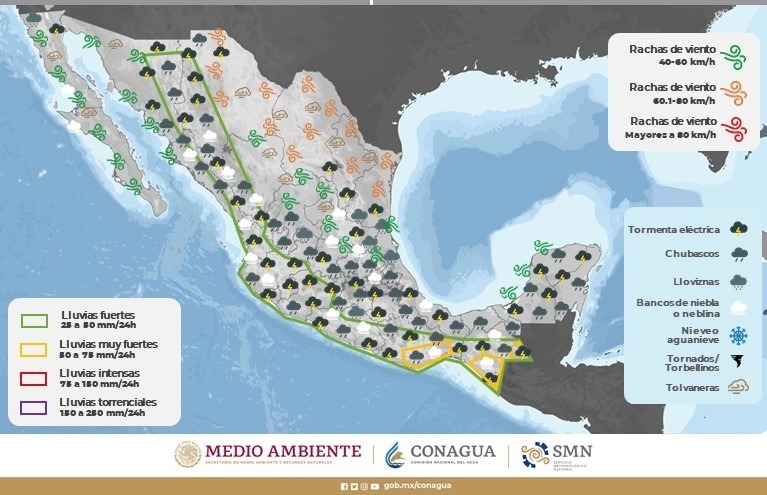 Se pronostican lluvias moderadas a puntualmente fuertes en la zona noroeste del estado, con acumulaciones de entre 25.1 y 50 milímetros (mm) en Guadalupe y Calvo, Casas Grandes, Madera, Moris, Ocampo, Urique, Batopilas y Morelos.