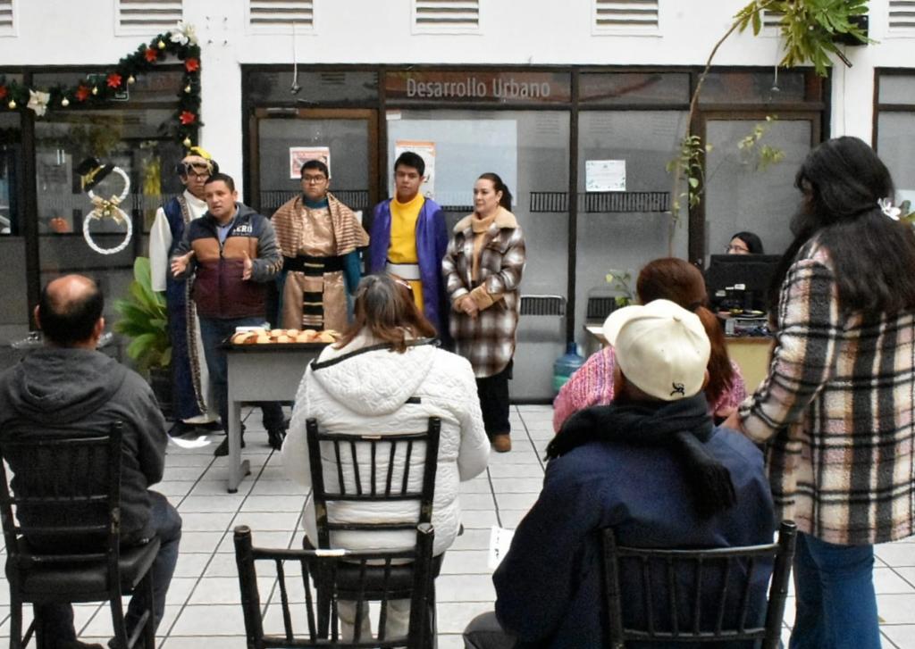 Dentro del evento, se contó con la presencia de los tres Reyes Magos: Melchor, Gaspar y Baltasar, mismos que hicieron entrega de la tradicional rosca a los asistentes que acudieron a pagar el predial.