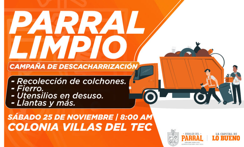 Este sábado, a partir de las 8:00 de la mañana, el Gobierno de Parral lleva el programa «Parral Limpio» a través de la campaña de descacharrización a la Colonia Villas del Tec. El objetivo es promover hogares más limpios y seguros.