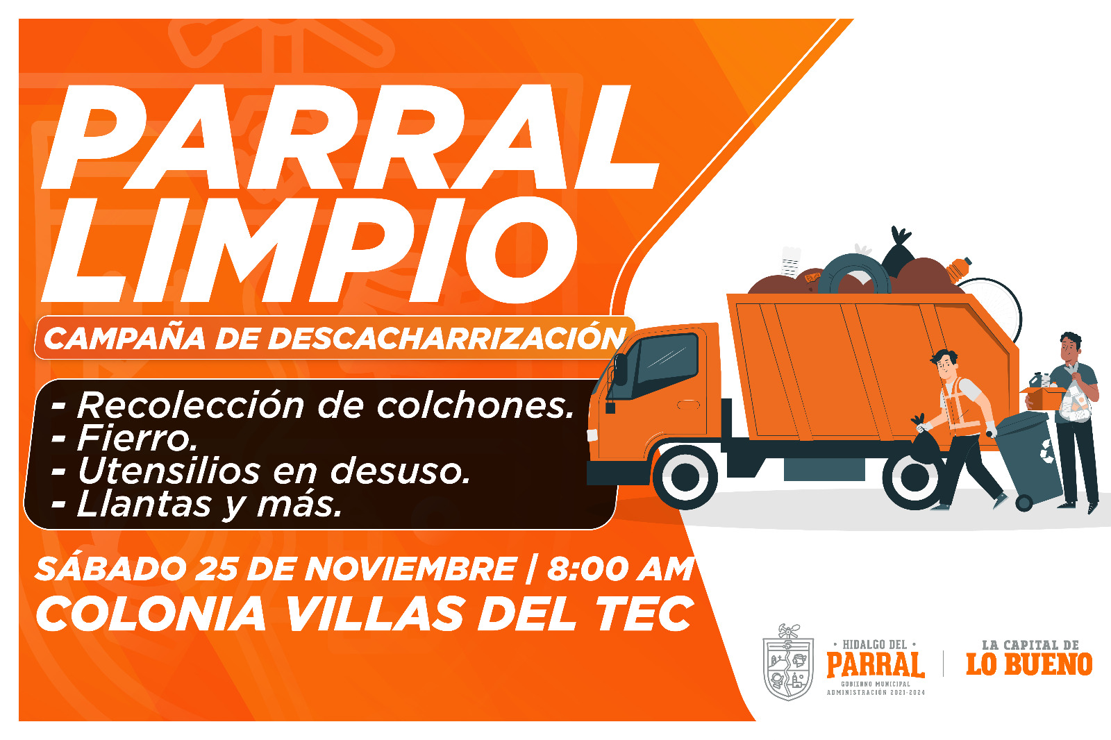 Este sábado, a partir de las 8:00 de la mañana, el Gobierno de Parral lleva el programa «Parral Limpio» a través de la campaña de descacharrización a la Colonia Villas del Tec. El objetivo es promover hogares más limpios y seguros.