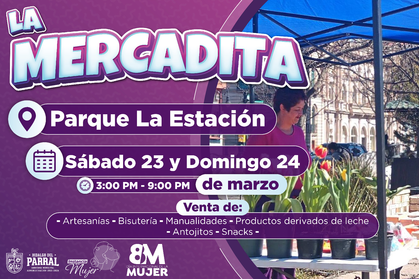Este fin de semana, las mujeres emprendedoras de “La Mercadita” ofertarán su amplia variedad de productos en el Parque La Estación, desde las 3:00 de la tarde hasta las 9:00 de la noche.