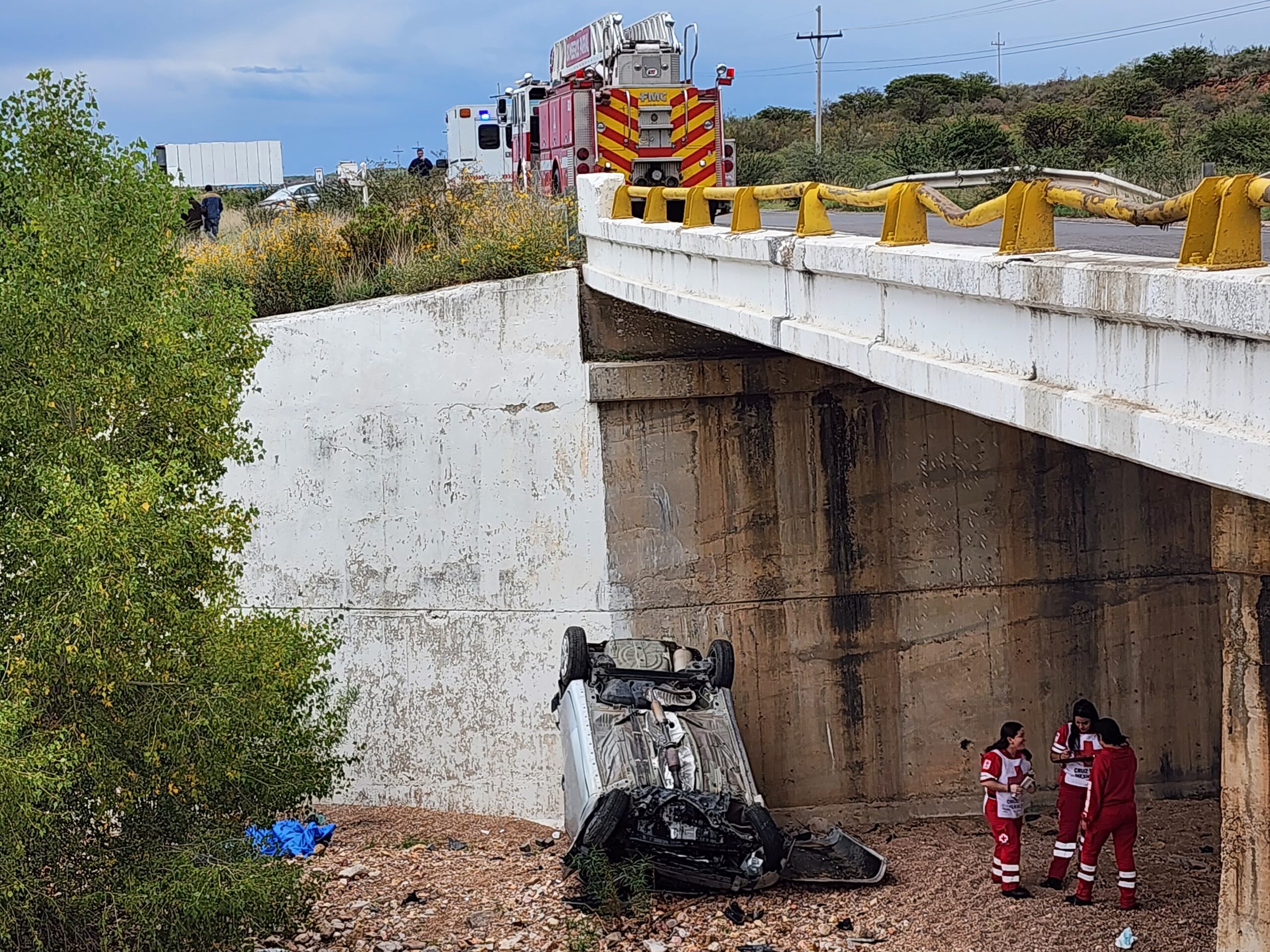 Parral. Cerca de las 17:00 horas se dio un reporte a los numeros de emergencia 911 sobre una volcadura cerca del Km 13 de la carretera Parral – Jimenez, al arribar cuerpos de rescate, bomberos, proteccion civil y guardia nacional, encontrarón un veículo marca Nissan March color gris de reciente modelo el cual se encontraba con los neumaticos hacia arriba.