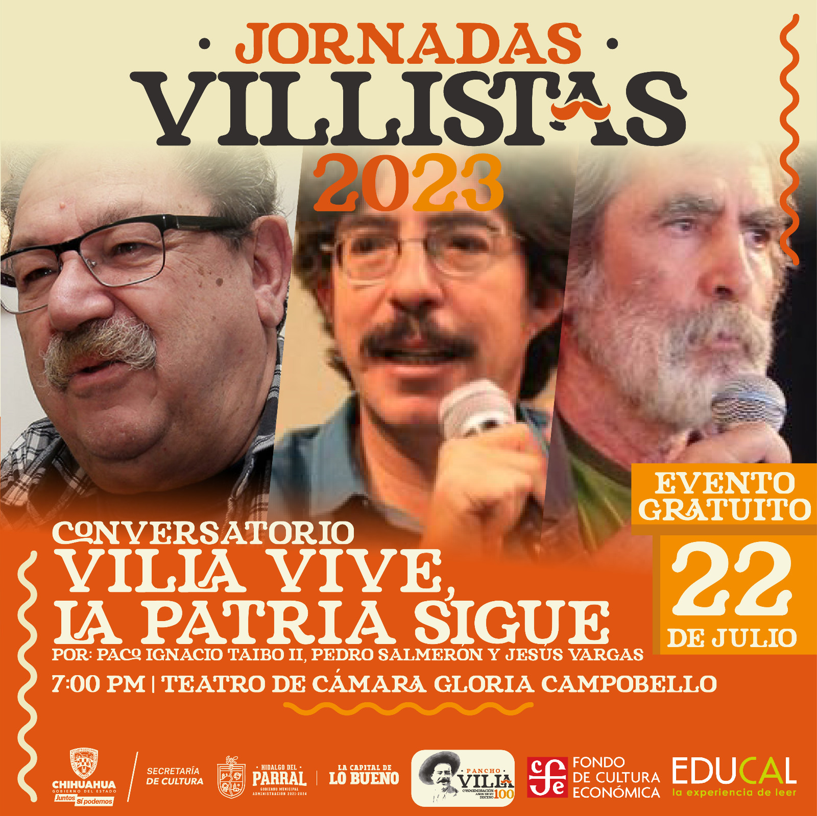 Dentro de los eventos que cerrarán las Jornadas Villistas 2023, la Ruta “Villa vive, la patria sigue” se extenderá hasta Parral, en donde los historiadores Paco Ignacio Taibo II, Pedro Salmerón y Jesús Vargas impartirán una charla este 22 de julio en el Teatro de Cámara Gloria Campobello a las 7:00 de la tarde.