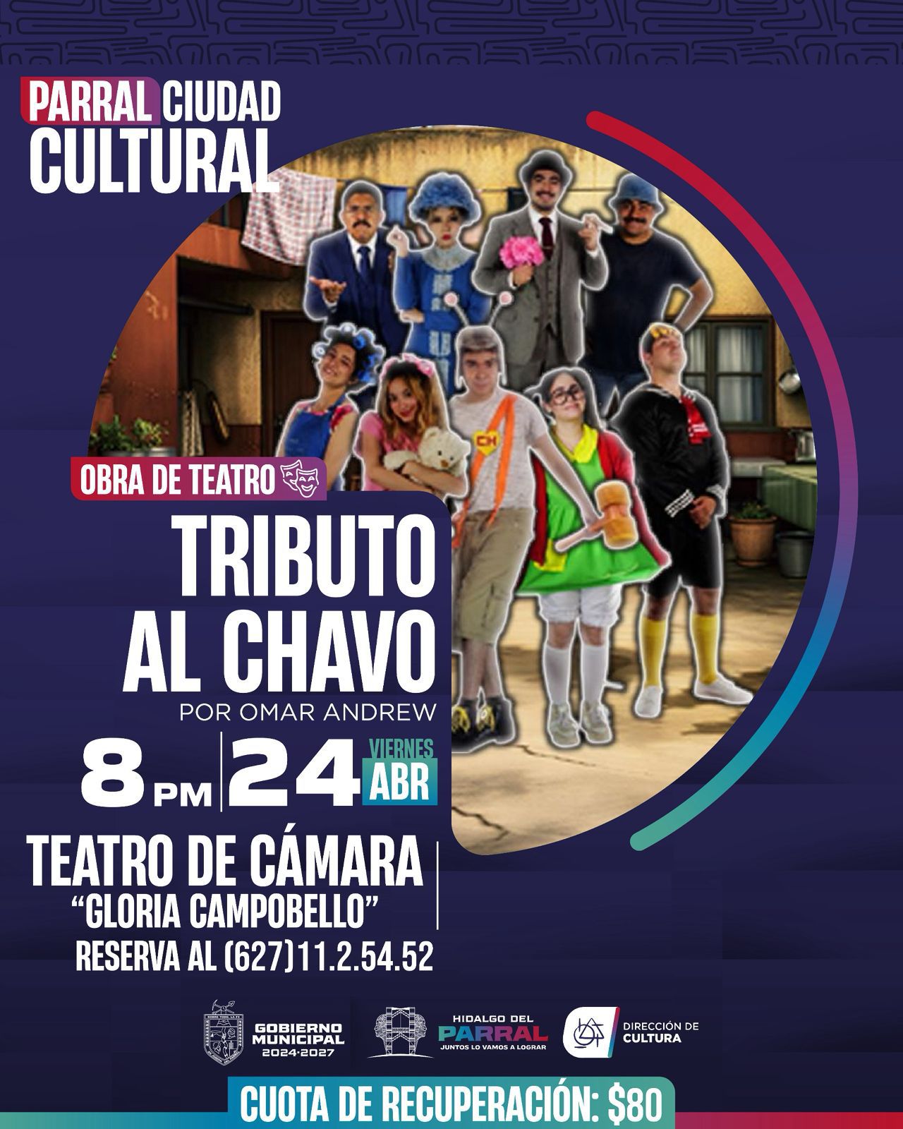 El Gobierno de Parral, a través de la Dirección de Cultura, invita a la ciudadanía a disfrutar de la obra de teatro “Tributo al Chavo”, una puesta en escena pensada para toda la familia que promete momentos de nostalgia y diversión.