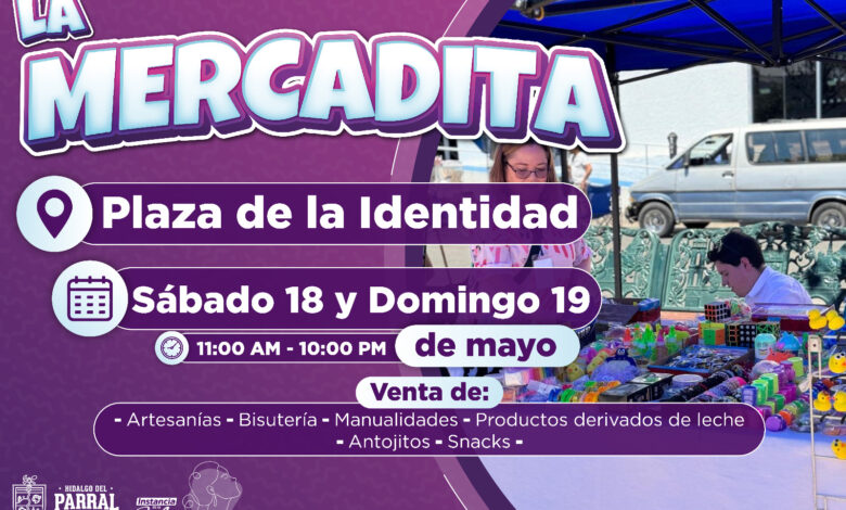 El Gobierno de Parral invita a la ciudadanía a asistir a la Mercadita, que se instalará este fin de semana en la Plaza de la Identidad. Estará abierta al público desde las 11:00 hasta las 22:00 horas, brindando una excelente oportunidad para apoyar a las mujeres emprendedoras de la ciudad.