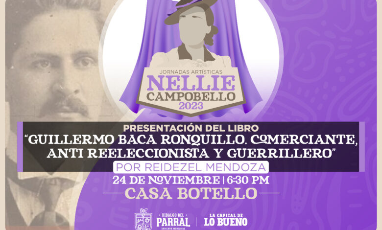 El Gobierno de Parral a la presentación del libro “Guillermo Baca Ronquillo, comerciante, anti reeleccionista y guerrillero”, la cual se efectuará este viernes a las 6:30 de la tarde en Casa Botello; como parte de los eventos enmarcados en las Jornadas Artísticas “Nellie Campobello”.