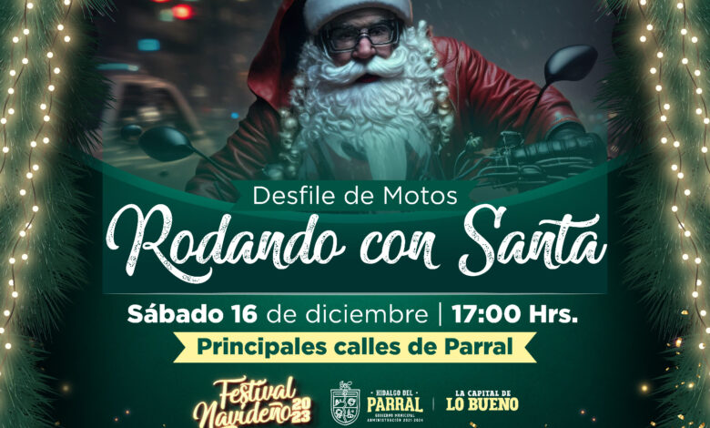 El Gobierno de Parral invita este sábado al gran desfile de motos «Rodando con Santa», el cual forma parte del espectacular Festival Navideño 2023 y promete llevar alegría en las principales calles de la ciudad ciudad.