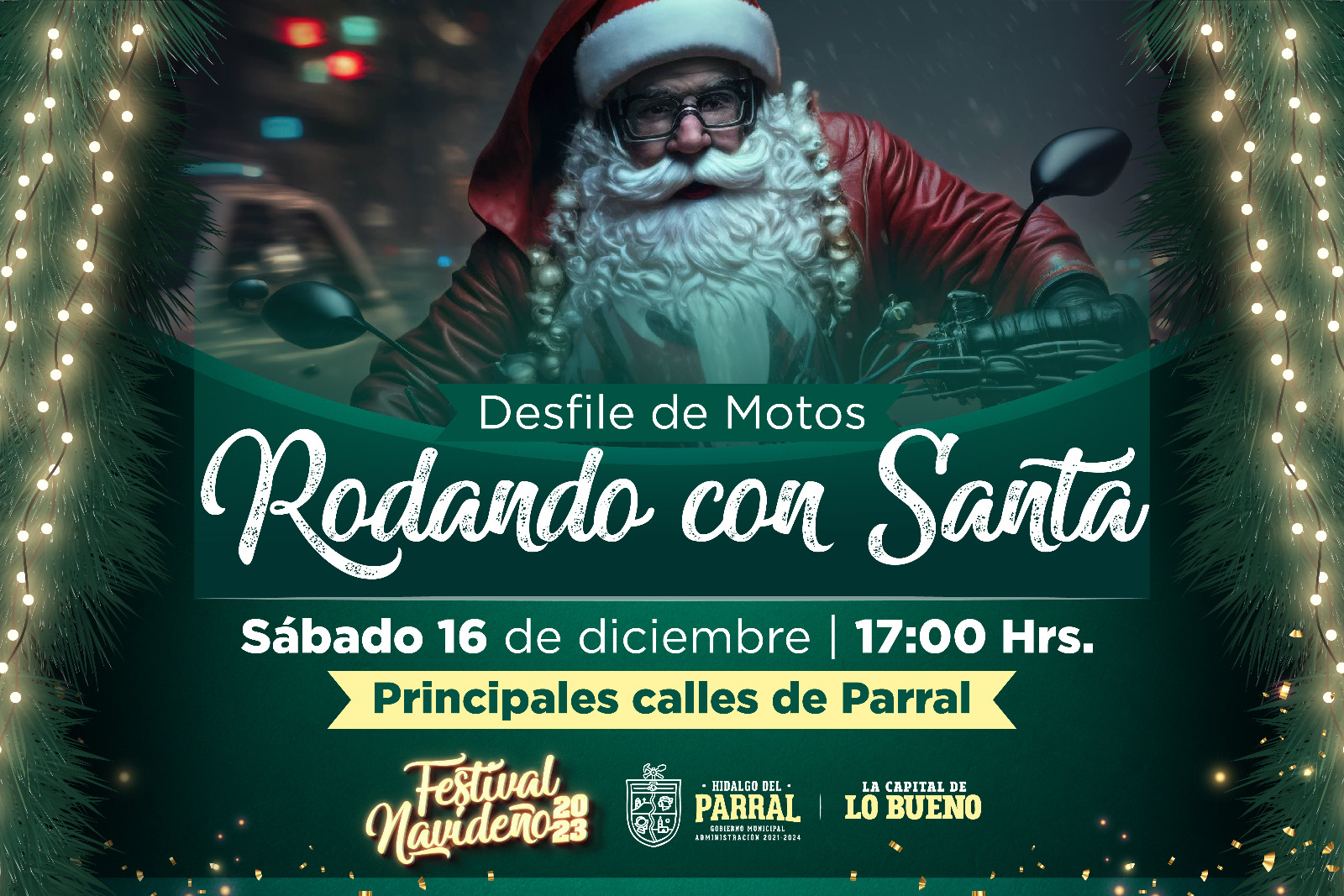 El Gobierno de Parral invita este sábado al gran desfile de motos «Rodando con Santa», el cual forma parte del espectacular Festival Navideño 2023 y promete llevar alegría en las principales calles de la ciudad ciudad.