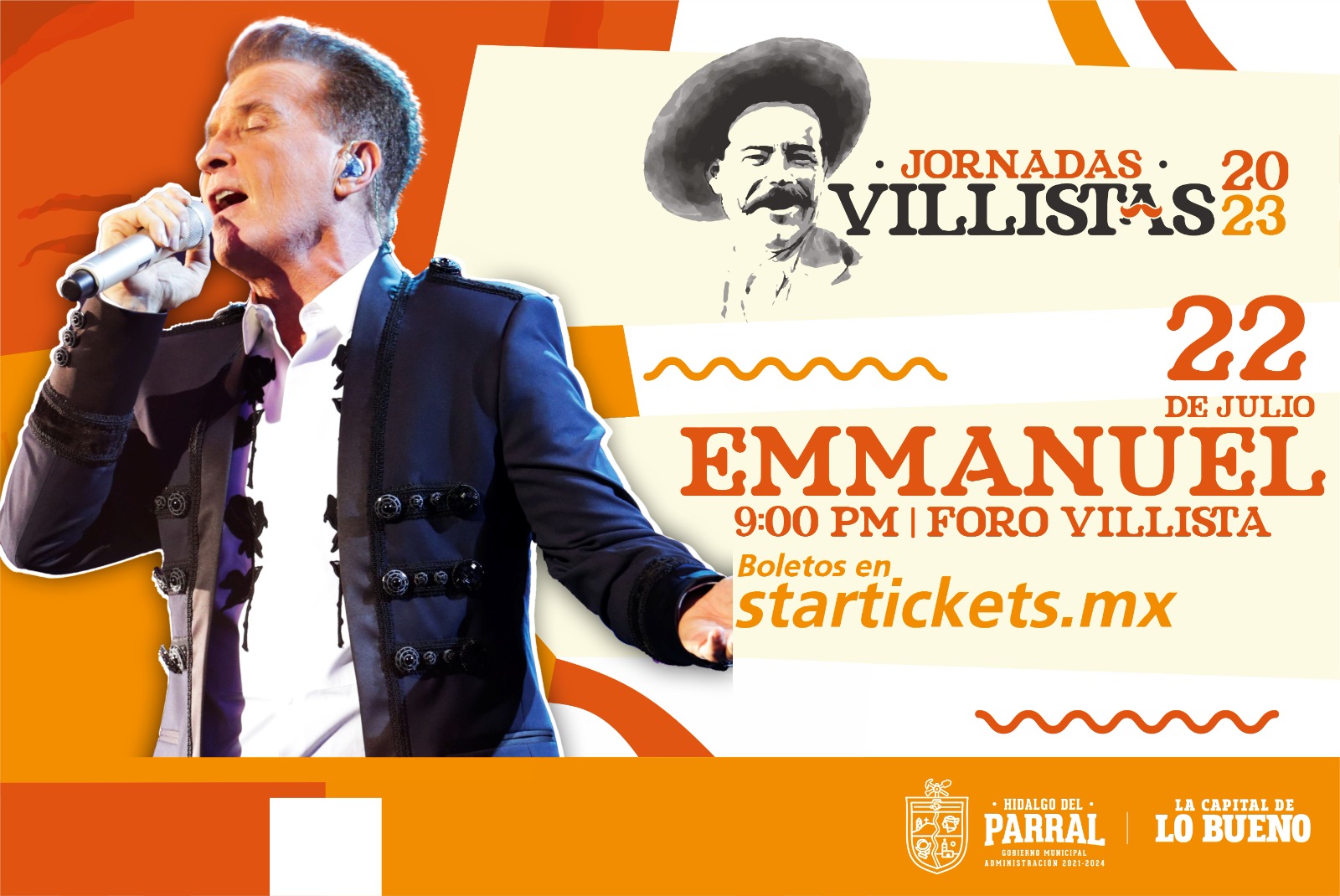El Gobierno de Parral invita a toda la ciudadanía a asistir a la presentación musical de Emmanuel, que formará parte de las emocionantes Jornadas Villistas. Este evento promete ser un espectáculo inolvidable, lleno de música y entretenimiento de primer nivel, en el marco de las festividades que honran la memoria del revolucionario Francisco Villa.