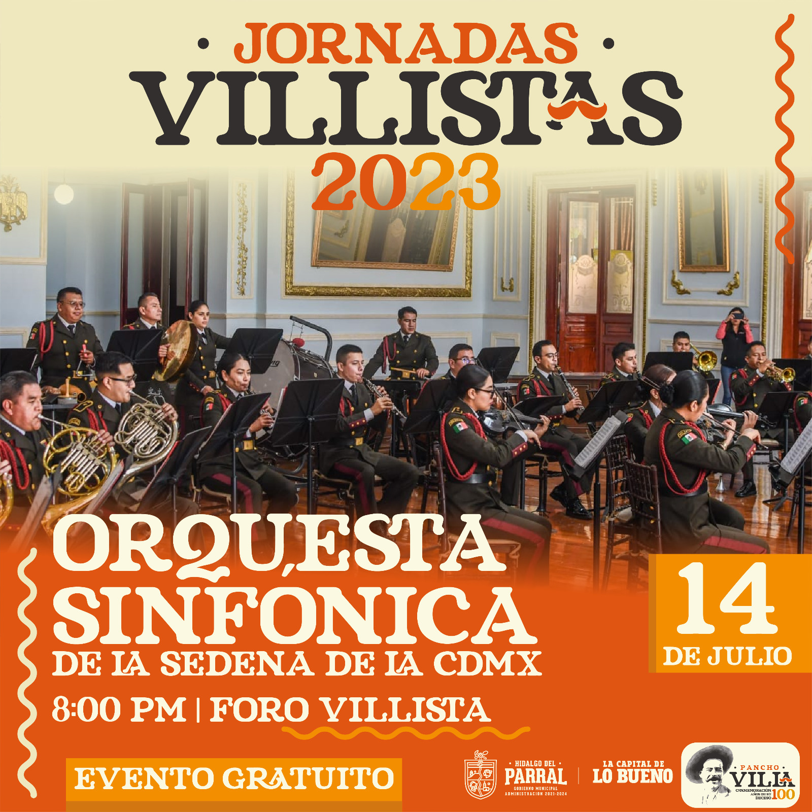 La Sinfónica de la Secretaría de la Defensa Nacional (SEDENA) de la Ciudad de México realizará una magna presentación en la inauguración de las Jornadas Villistas 2023.