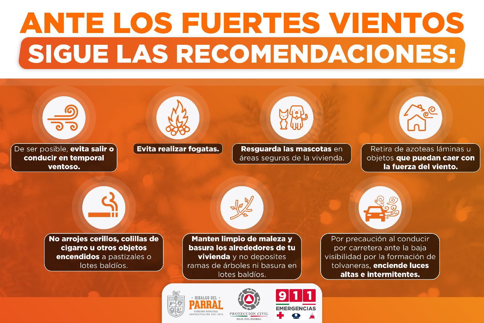Ante esta situación, el titular de Protección Civil, Francisco Nájera Machuca hace un llamado a la población para extremar precauciones y seguir las siguientes recomendaciones: