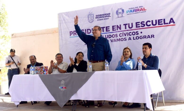 Como parte del programa “Presidente en tu Escuela”, el alcalde Salvador Calderón encabezó el saludo cívico en la escuela primaria Amado Nervo, reafirmando su interés por fortalecer la formación integral de los estudiantes a través de la promoción de los valores cívicos.