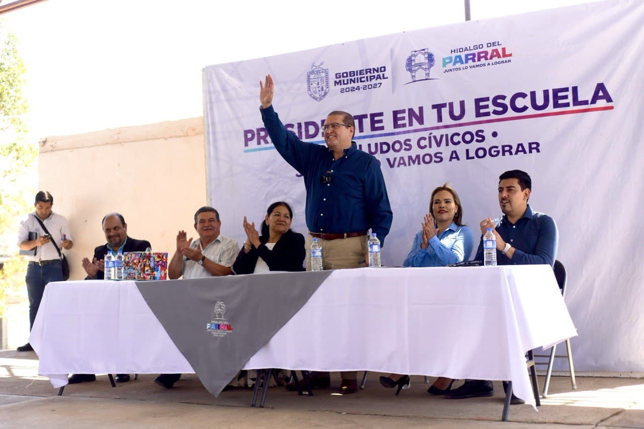 Como parte del programa “Presidente en tu Escuela”, el alcalde Salvador Calderón encabezó el saludo cívico en la escuela primaria Amado Nervo, reafirmando su interés por fortalecer la formación integral de los estudiantes a través de la promoción de los valores cívicos.