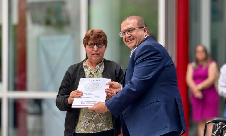 En coordinación con el Gobierno del Estado, el alcalde Salvador Calderón participó en la entrega de 62 escrituras que brindan certeza legal sobre su patrimonio a 198 familias de Parral. El acto se llevó a cabo con la presencia de autoridades estatales y representantes de distintas colonias beneficiadas.