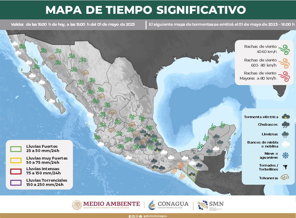 Para el periodo señalado se prevén rachas por encima de los 55 kilómetros por hora (km/h) en Guadalupe y Ojinaga, y de hasta los 45 km/h en Juárez, Janos, Madera, Temósachi, Maguarichi, Bocoyna, Nonoava, Balleza, Delicias, Julimes, Camargo, Parral y Jiménez.