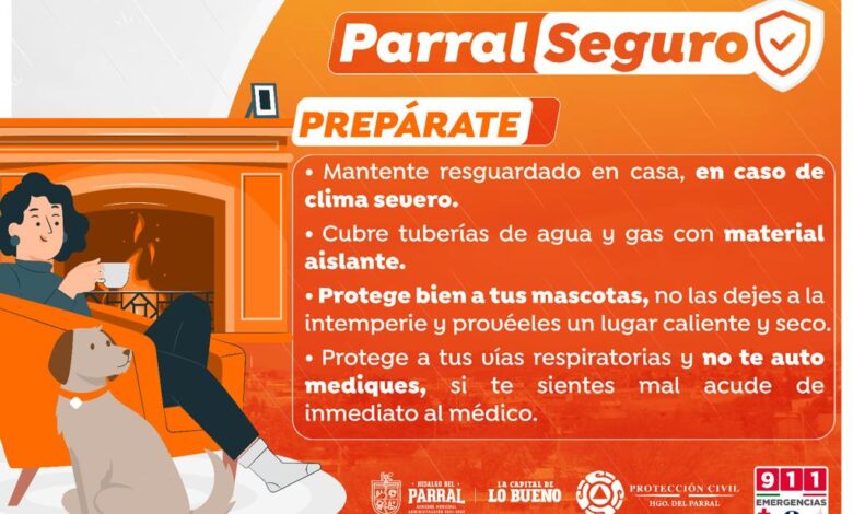 La Unidad de Protección Civil de Parral informa a la ciudadanía sobre la llegada de un nuevo frente frío que generará un descenso significativo en las temperaturas durante este fin de semana.