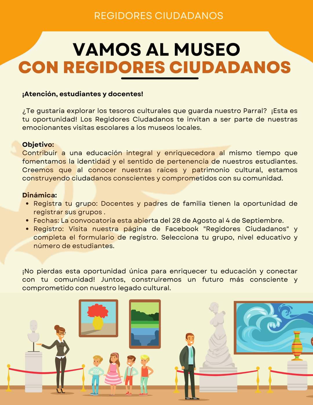 La convocatoria estará abierta desde el 28 de Agosto hasta el 4 de Septiembre. Tanto docentes como alumnos pueden registrar sus grupos para participar en esta emocionante oportunidad. La dinámica es simple: visitar la página de Facebook «Regidores Ciudadanos» y completar el formulario de registro, seleccionando el grupo, nivel educativo y el número de estudiantes.
