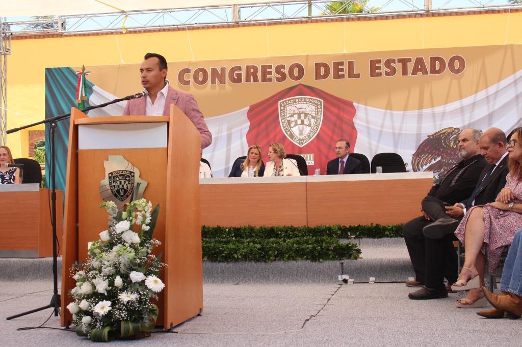 En una emotiva y significativa ceremonia, el Alcalde César Peña Valles; la Gobernadora del Estado, Maru Campos Galván; el Secretario Nacional de Turismo Miguel Ángel Torruco; la Presidenta del Congreso, Diputada Adriana Terrazas Porras y en representación del Poder Judicial, el magistrado César Ramírez, encabezaron la Sesión Solemne del Congreso del Estado para rendir un sentido homenaje al ilustre General Francisco Villa en el centenario de su fallecimiento.