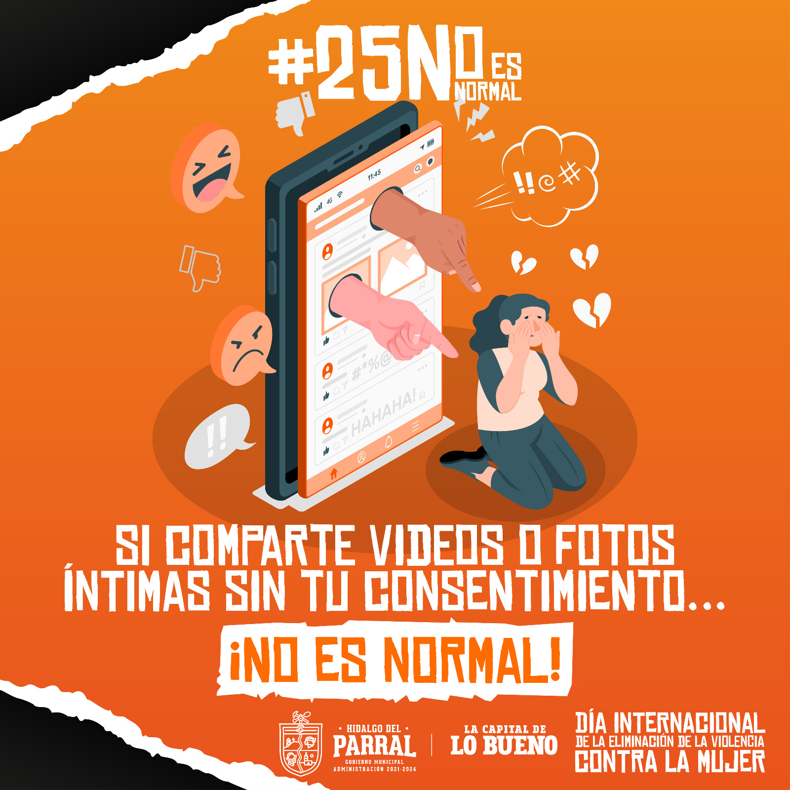 El Gobierno de Parral da seguimiento puntual a la campaña «No es Normal» que busca sensibilizar e informar a la población acerca de los diferentes tipos de violencia de género, destacando en esta ocasión la violencia digital. Lo anterior en el marco del Mes Naranja.