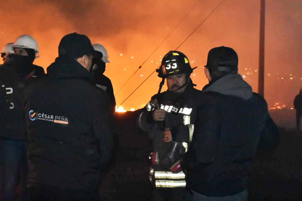 La noche de este lunes, el Alcalde César Peña Valles supervisó las labores que efectúan los cuerpos de emergencia y brigadistas para sofocar el incendio suscitado en una empresa maderera.