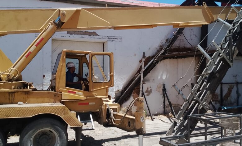 Por lo complicado de los trabajos hubo la necesidad de utilizar una grúa hidráulica para apoyo de los trabajadores de la Junta Central de Agua y Saneamiento (JCAS), para realizar la extracción del material que impedía la introducción del equipo nuevo de bombeo.